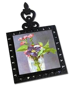 Fine Art Clematis in Crystal Vase Iron Trivet Category: Home & Kitchen